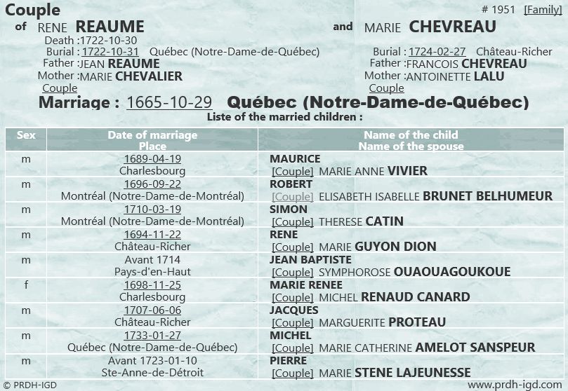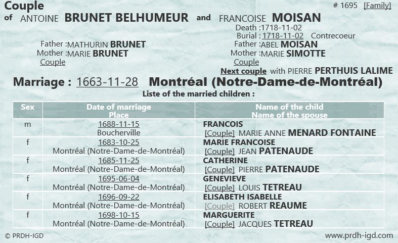 Parents and family of Elizabeth Brunet Belhumeur (1674 - 1748)