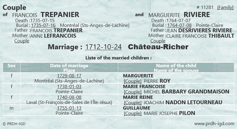 Marriage and family of Francois Trepanier and Marguerite Riviere