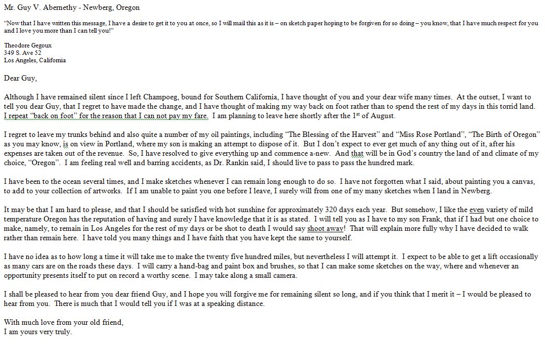 Letter - Theo. Gegoux to Guy Abernethy July 3, 1925